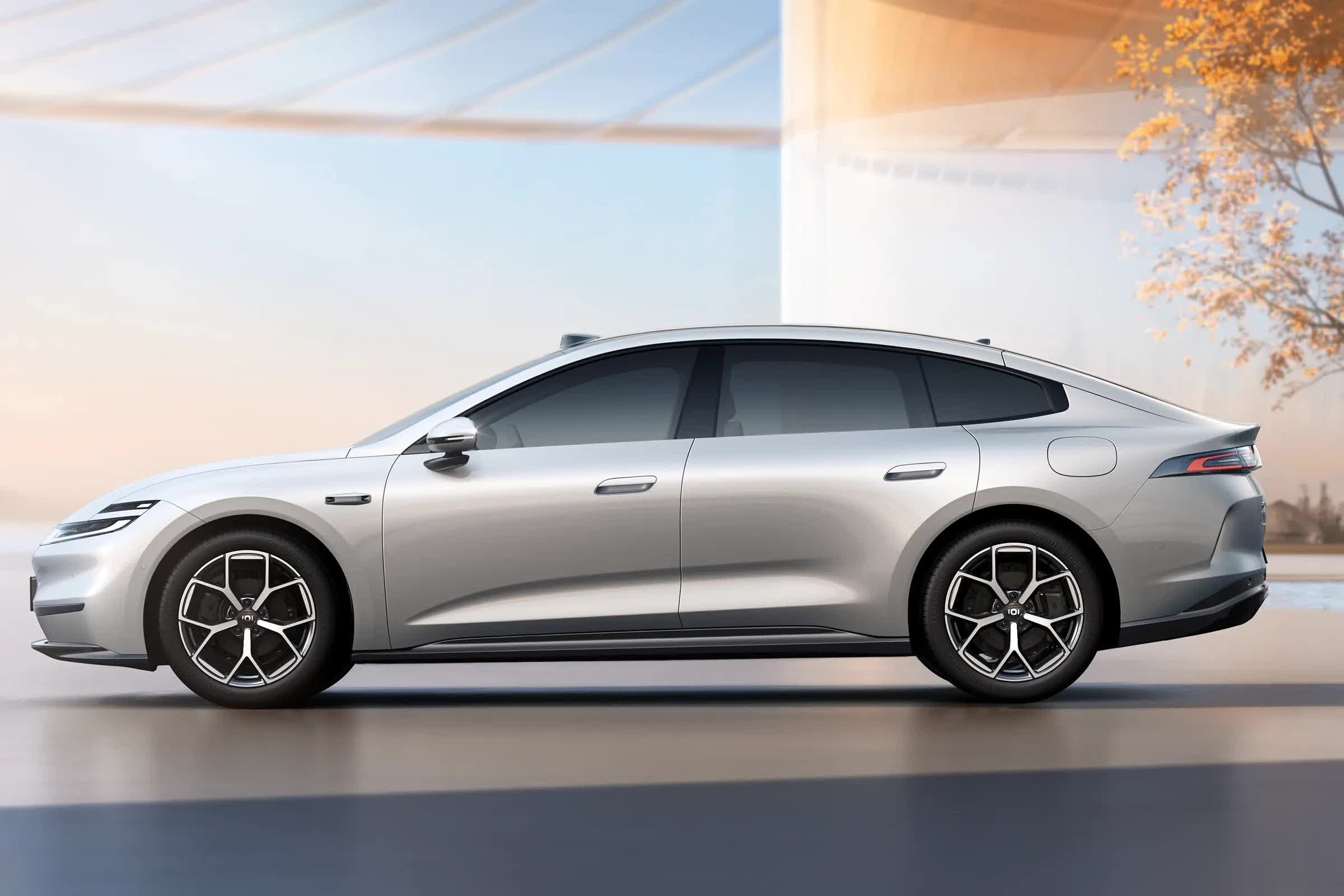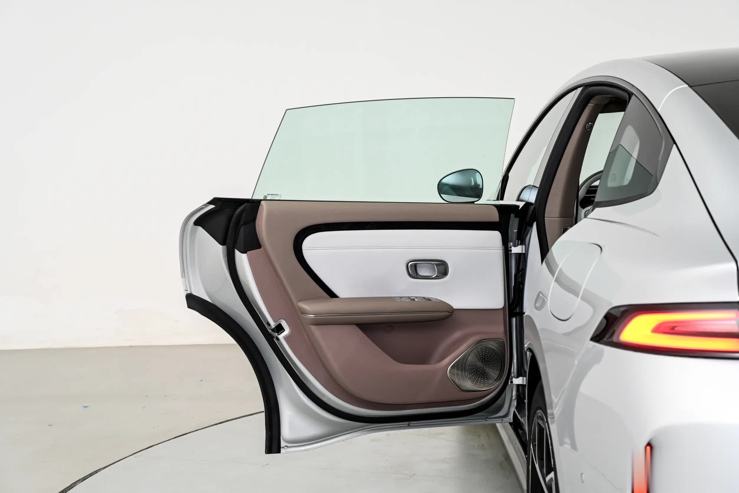 车身侧面采用溜背式造型,新车配备了半隐藏式门把手+无框车门+无边框后视镜,其长宽高分别为4885×1916×1496mm,轴距达到2922mm。