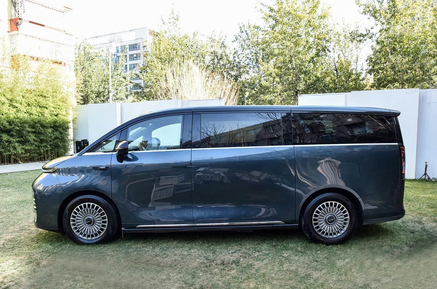 再来看车身侧面部分,V900延续了翼真L380的设计语言,采用平直的车顶线条和超长轴距设计,既保证了车内空间的实用性,又保持了优雅的车身比例。隐藏式门把手和流畅的腰线设计不仅提升了美观度,还优化了空气动力学性能,风阻系数降低明显。C柱和D柱之间的大面积舷窗设计为第三排乘客提供了良好的视野,避免了传统MPV第三排"铁窗泪"的尴尬。双侧电动滑门的设计让乘客上下车更加便捷,体现了对细节的关注。