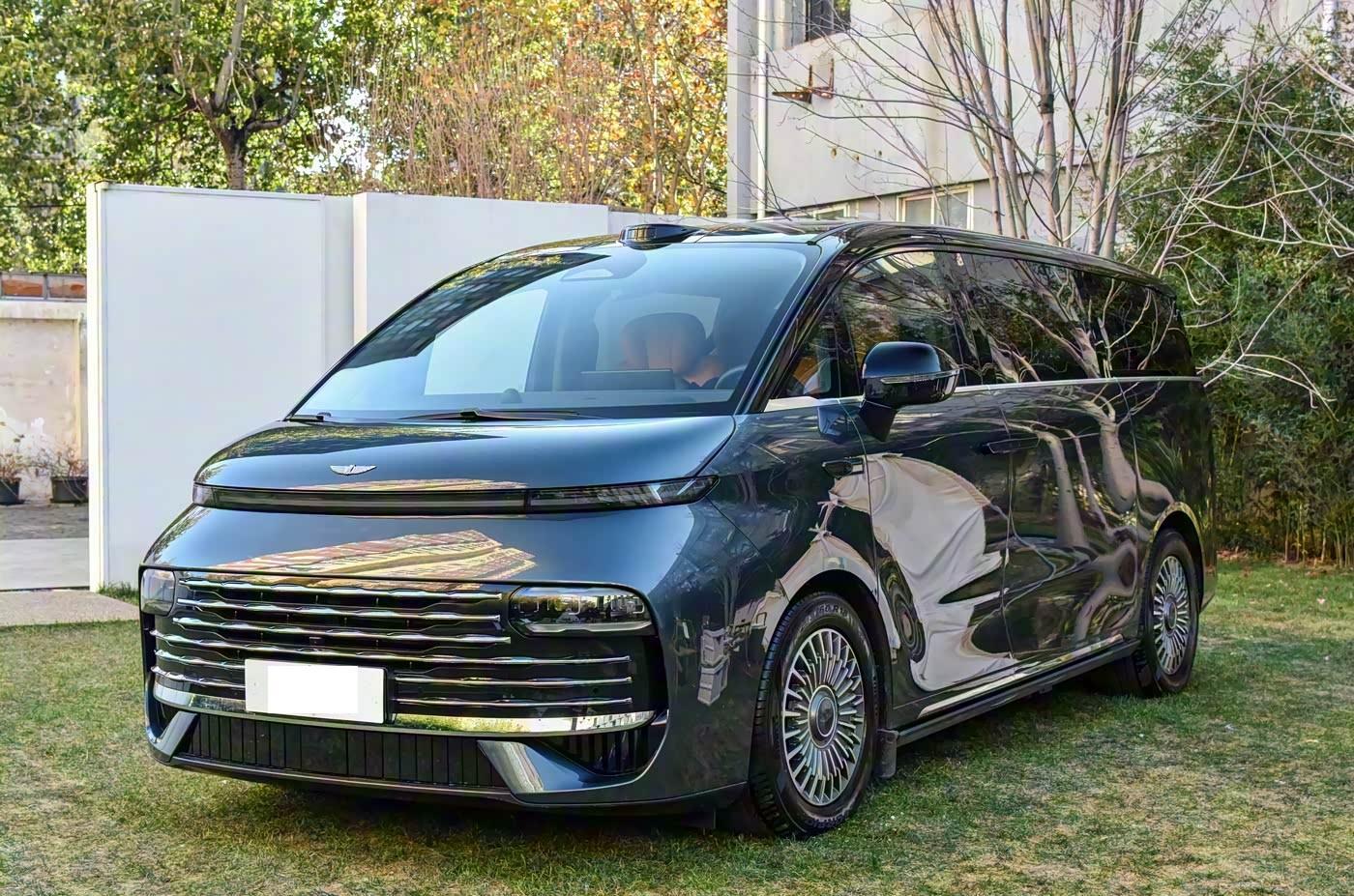 我们首先来看新车的外观设计方面,吉利银河V900的车头设计堪称"新中式"风格的典范。前脸采用"水韵金晖"格栅设计,六层精工纹理形成横向波浪形态,在阳光下呈现出金鳞闪耀的视觉效果。这种设计灵感源自西湖与泰晤士河波光的交织,既保留了东方文化的韵味,又融入了现代科技元素。与传统的MPV不同,V900没有采用夸张的大面积格栅设计,而是通过相对收敛的格栅面积和贯穿式灯带,营造出更加现代和优雅的前脸造型。